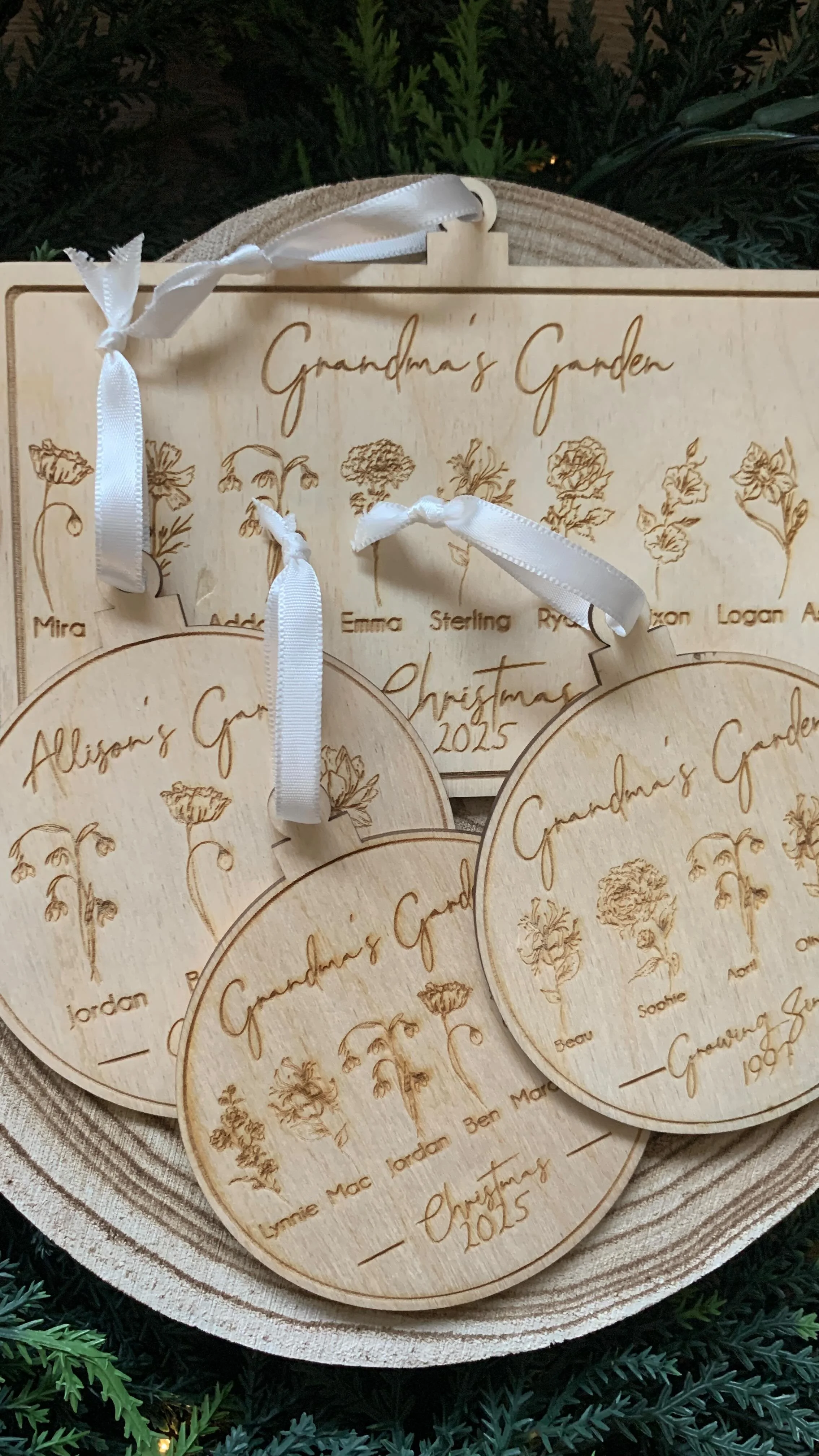 You can choose how you want to represent your loved ones on these wall hangings. There are 2 flowers to choose from for each month, and will be displayed in the Garden format. If you are wanting a bouquet format, check out our Birth Flower Bouquet Wall Hanging!